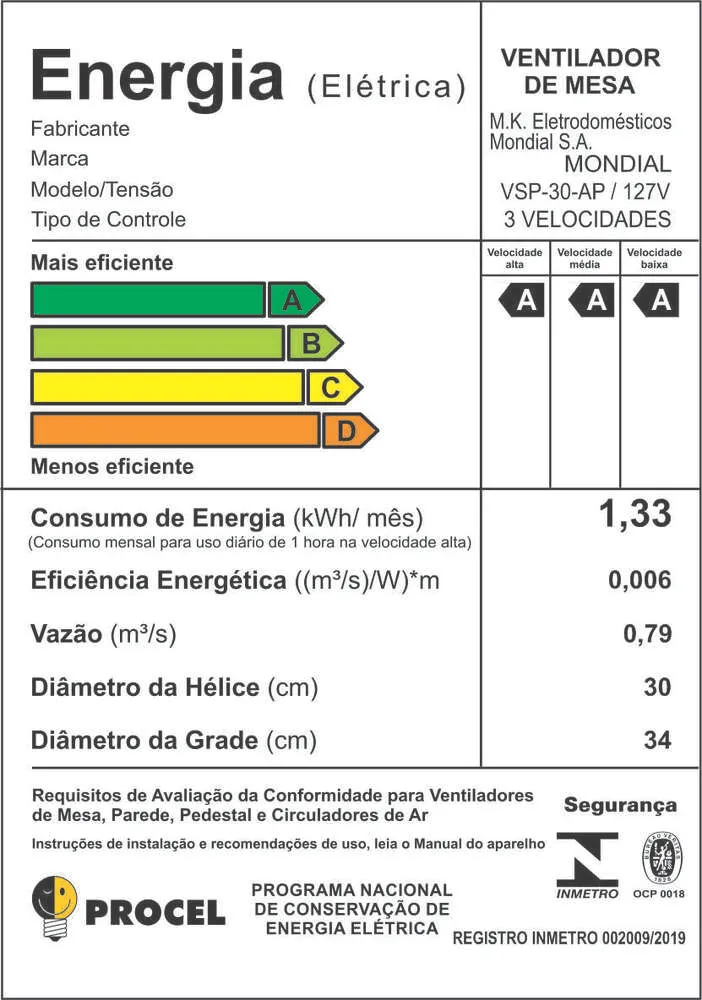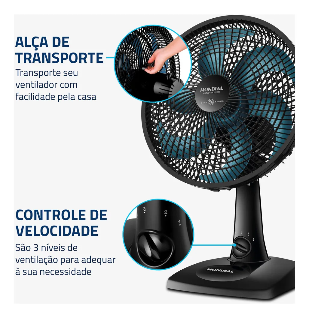 O sistema de ventilação da Mondial apresenta baixo nível de ruído, assegurando o silêncio
